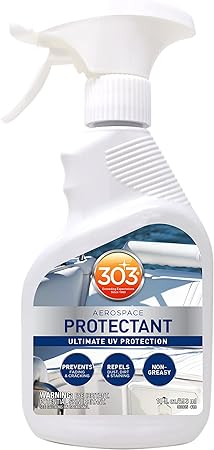 303 Marine Aerospace Protectant is a versatile product that provides superior UV protection and helps to prevent fading and cracking on a variety of marine surfaces including vinyl, plastic, synthetic and natural rubber, PVC, metal, gel coat, fiberglass, and stainless steel.